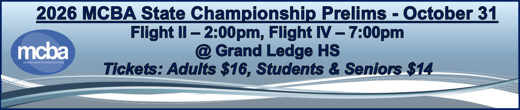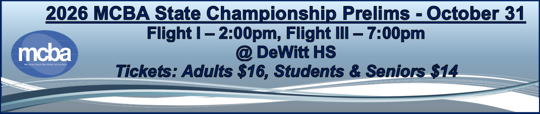 Michigan Competing Band Association 1583 Lake Breeze Ct, Muskegon, MI 49445 mcba.exec.dir@gmail.com |
